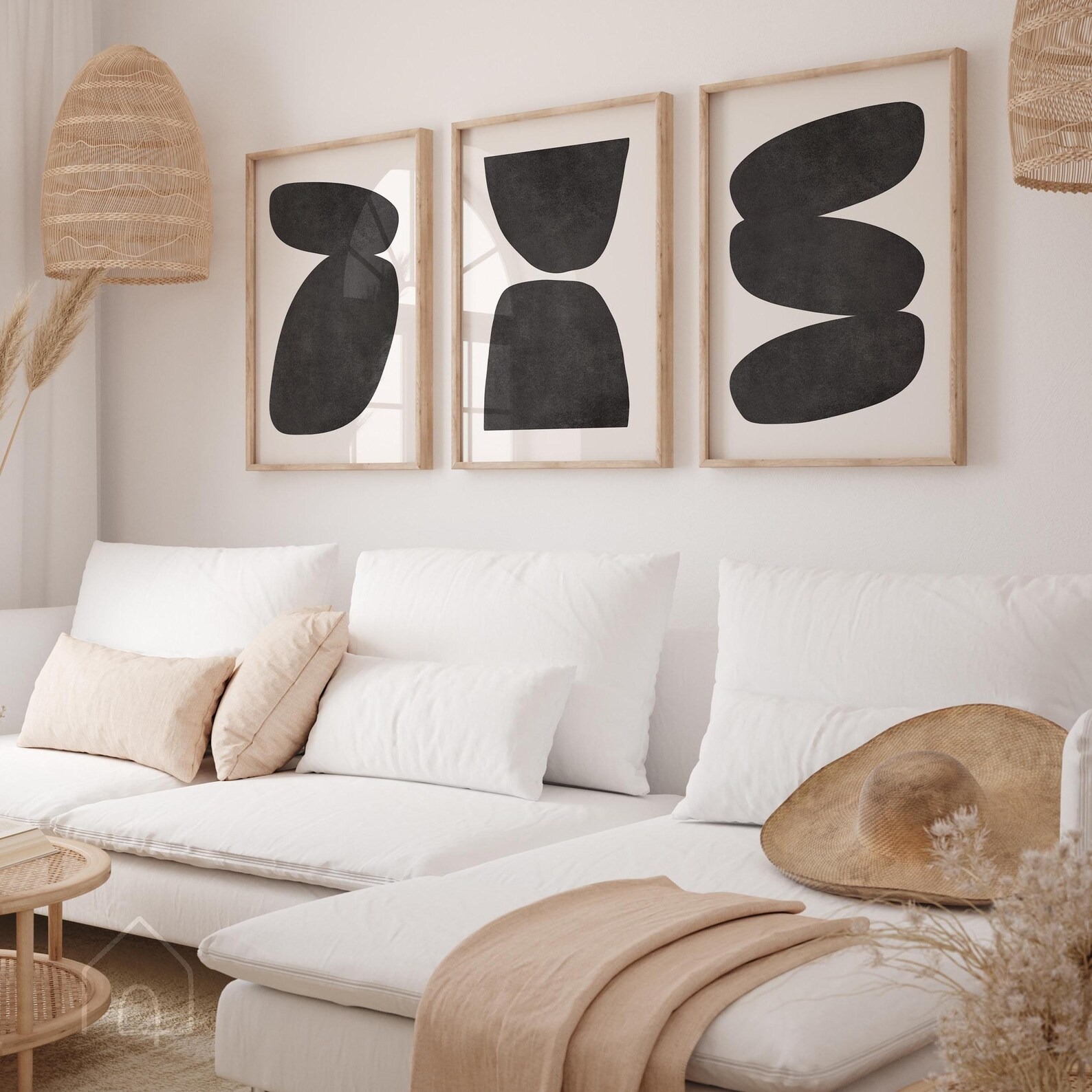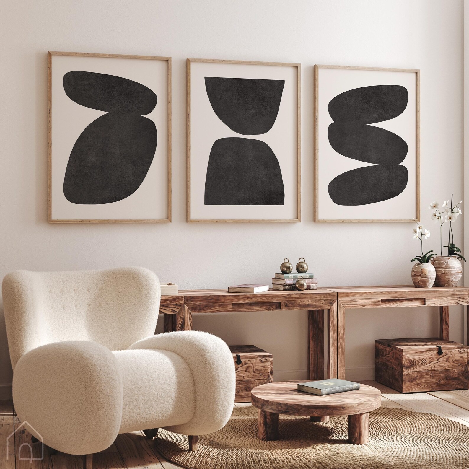 تابلو دکوراتیو دو تکه اشکال مینیمال، مجموعهای با سادگی و تأثیرگذاری عمیق است که برای طرفداران سبکهای مینیمال و اسکاندیناوی طراحی شده. این ست با استفاده از اشکال هندسی ساده و رنگهای مشکی و سفید خنثی، به راحتی با هر نوع دکوراسیونی هماهنگ میشود و فضایی آرام و هنری ایجاد میکند. این ست سهتکه بهترین انتخاب برای بالای کاناپه، تختخواب یا دکوراسیون راهروهاست.