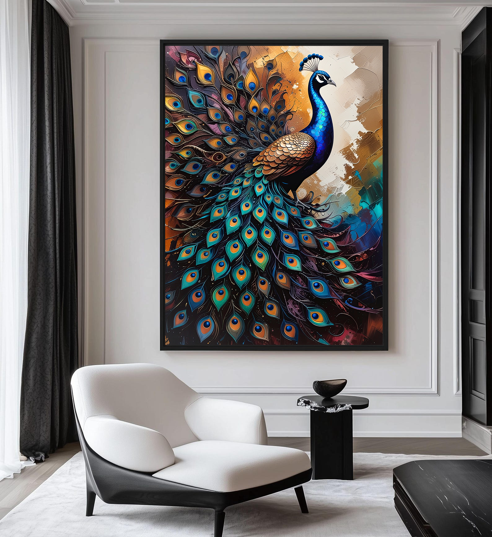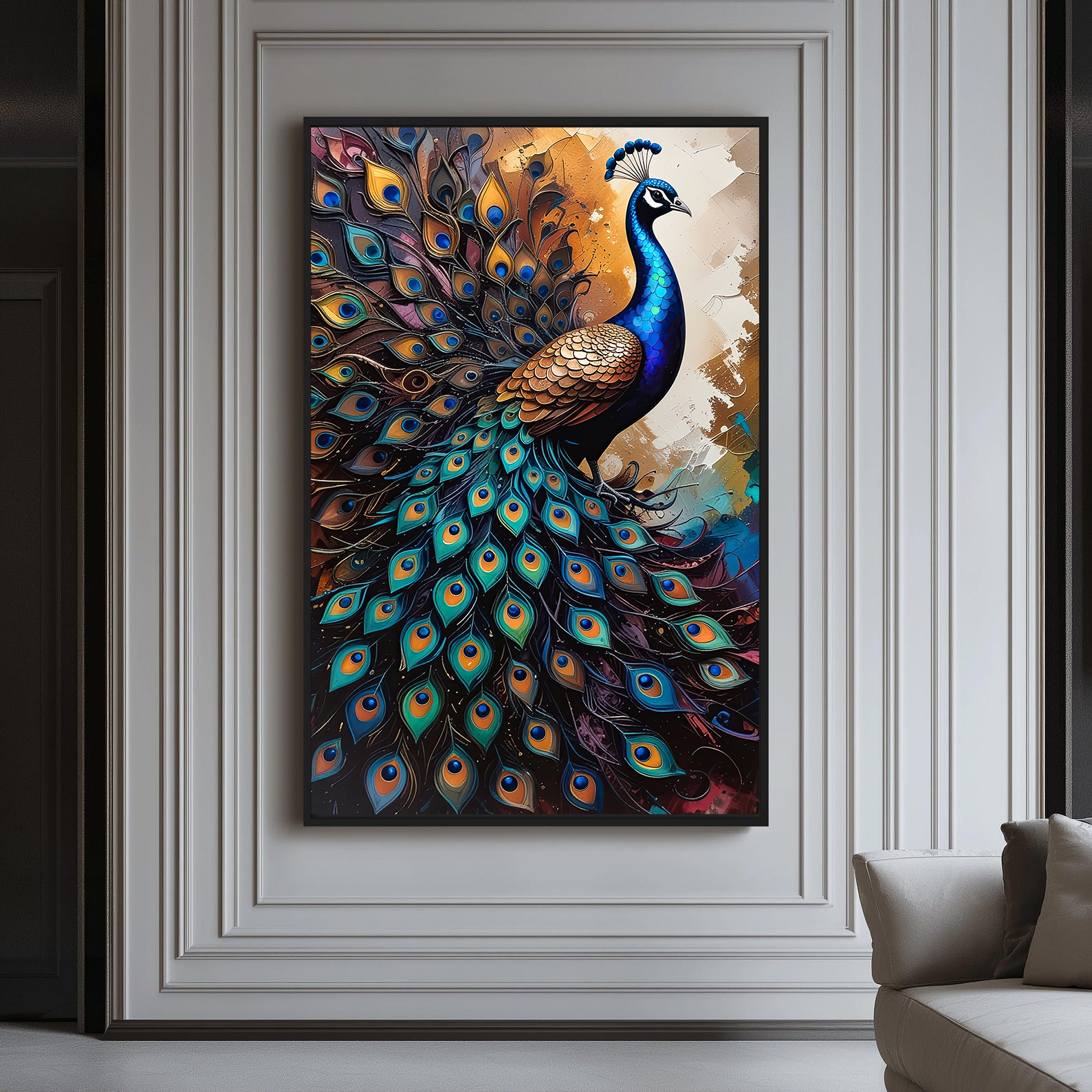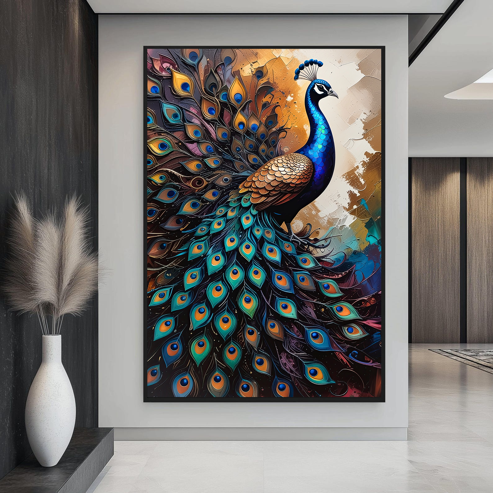 - جلوه سهبعدی و برجسته: به لطف تکنیک خاص چاپ، پرهای طاووس عمق و بافتی سهبعدی دارند که حس واقعی نقاشی بافتدار را تداعی میکند.