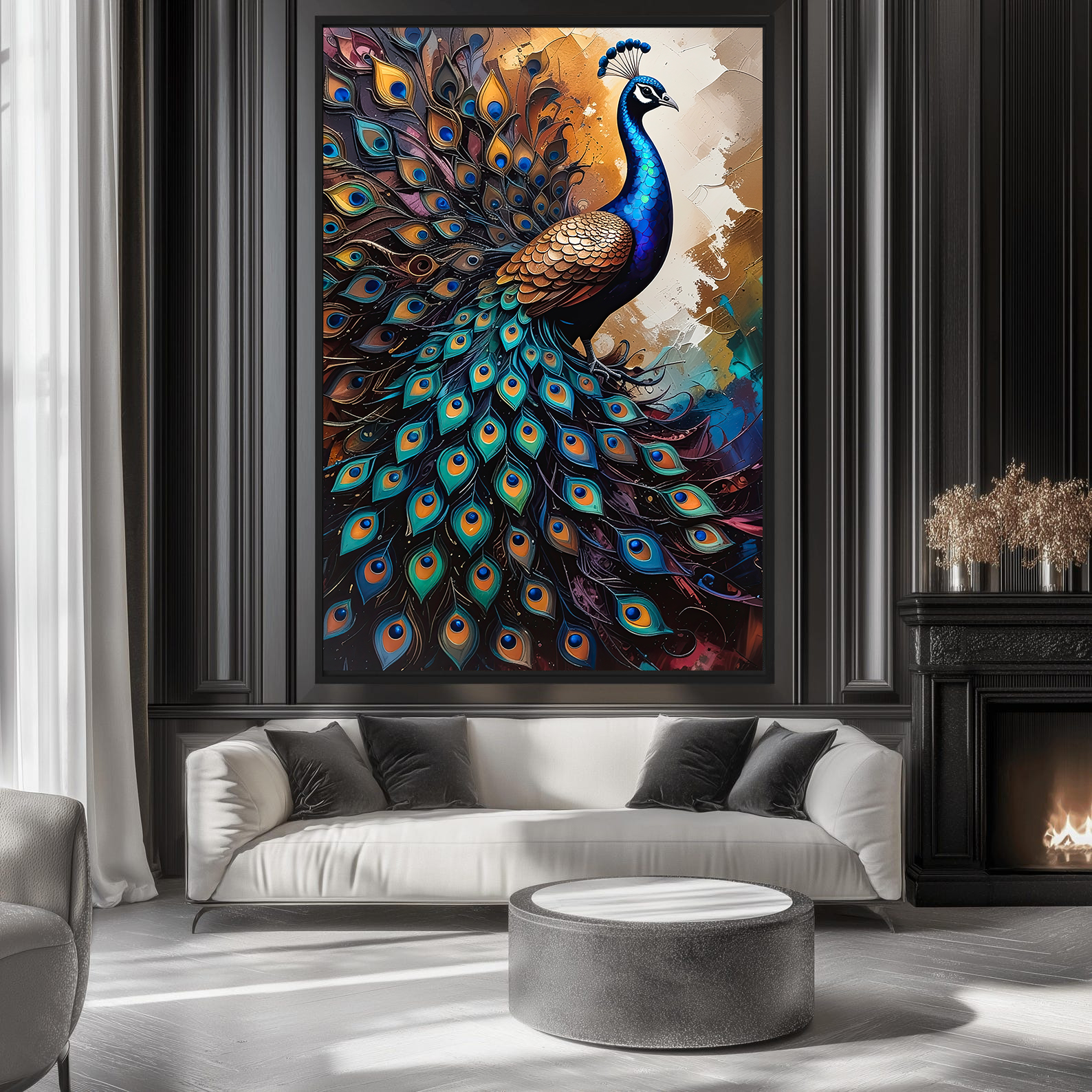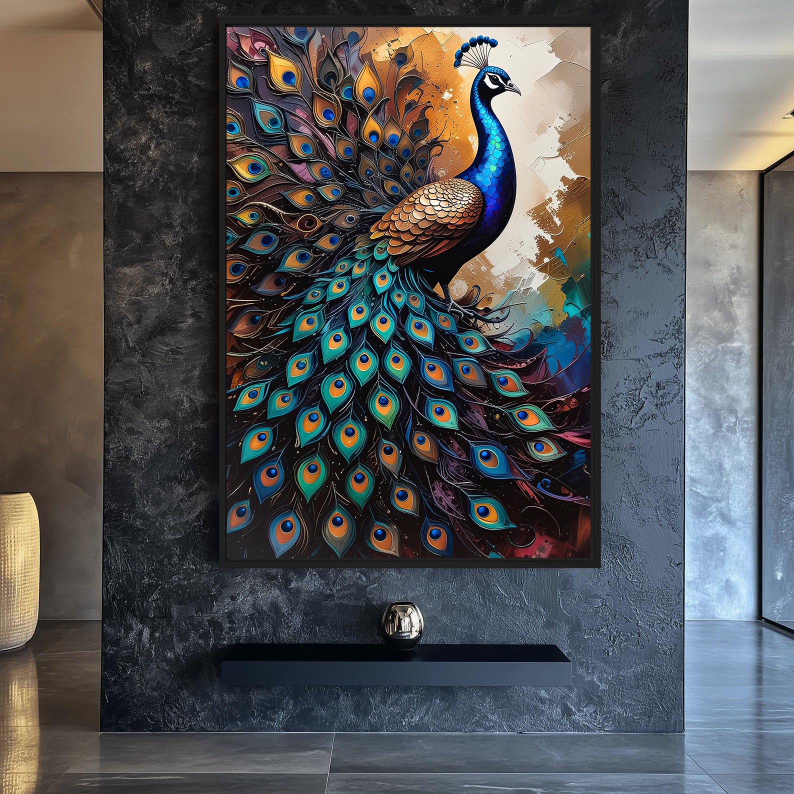 تابلو دکوراتیو طاووس باشکوه، یک اثر هنری خیرهکننده که نماد شکوه، زیبایی و ابهت است. این تابلو با نمایش کامل طاووس و پرهای رنگارنگ آن در ترکیب با رگههای طلایی درخشان، یک اثر مدرن و مفهومی خلق کرده است. رنگهای غالب شامل فیروزهای، آبی کبالت، نارنجی و طلایی هستند که شور و هیجان را به محیط میبخشند. ایدهآل برای تکمیل دکوراسیون فضاهای لوکس، مجلل و کلاسیک که نیاز به یک نقطه کانونی قدرتمند دارند.