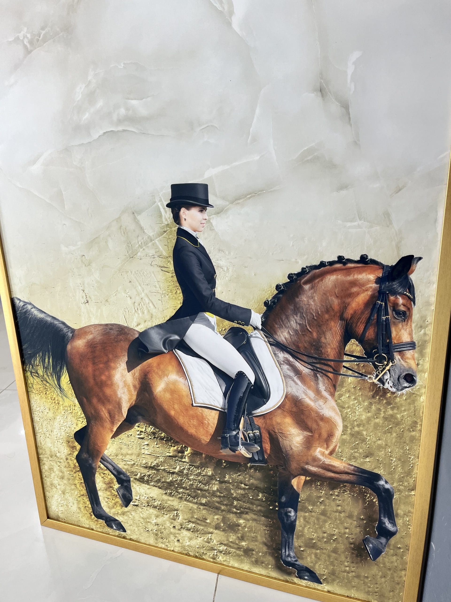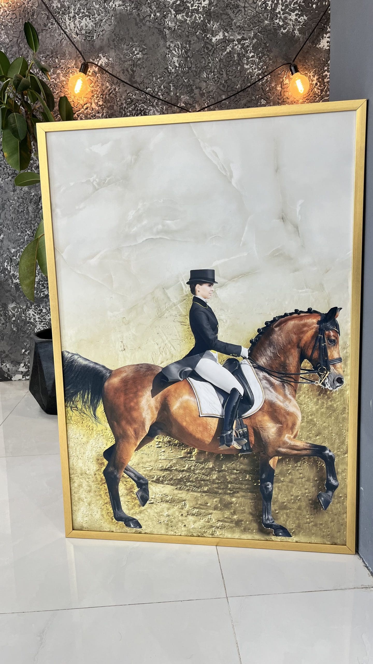 - اتاق پذیرایی: این تابلو دکوراتیو مدرن سوارکار جلوهای شیک و جذاب به دیوارهای پذیرایی میبخشد و محیط را گرم و دلنشین میکند.