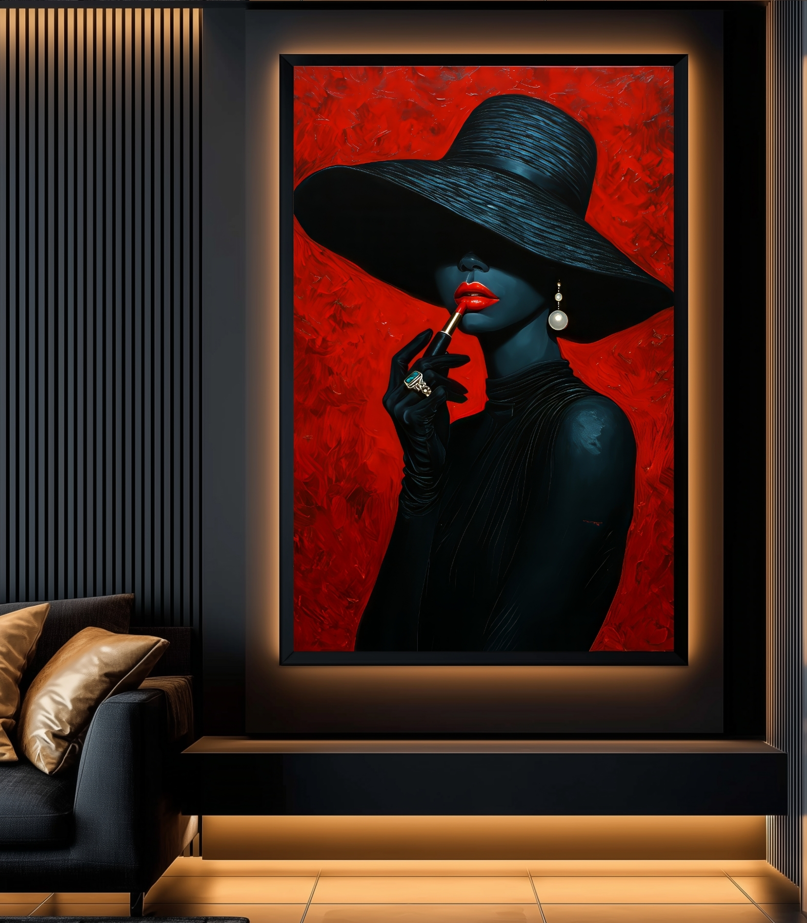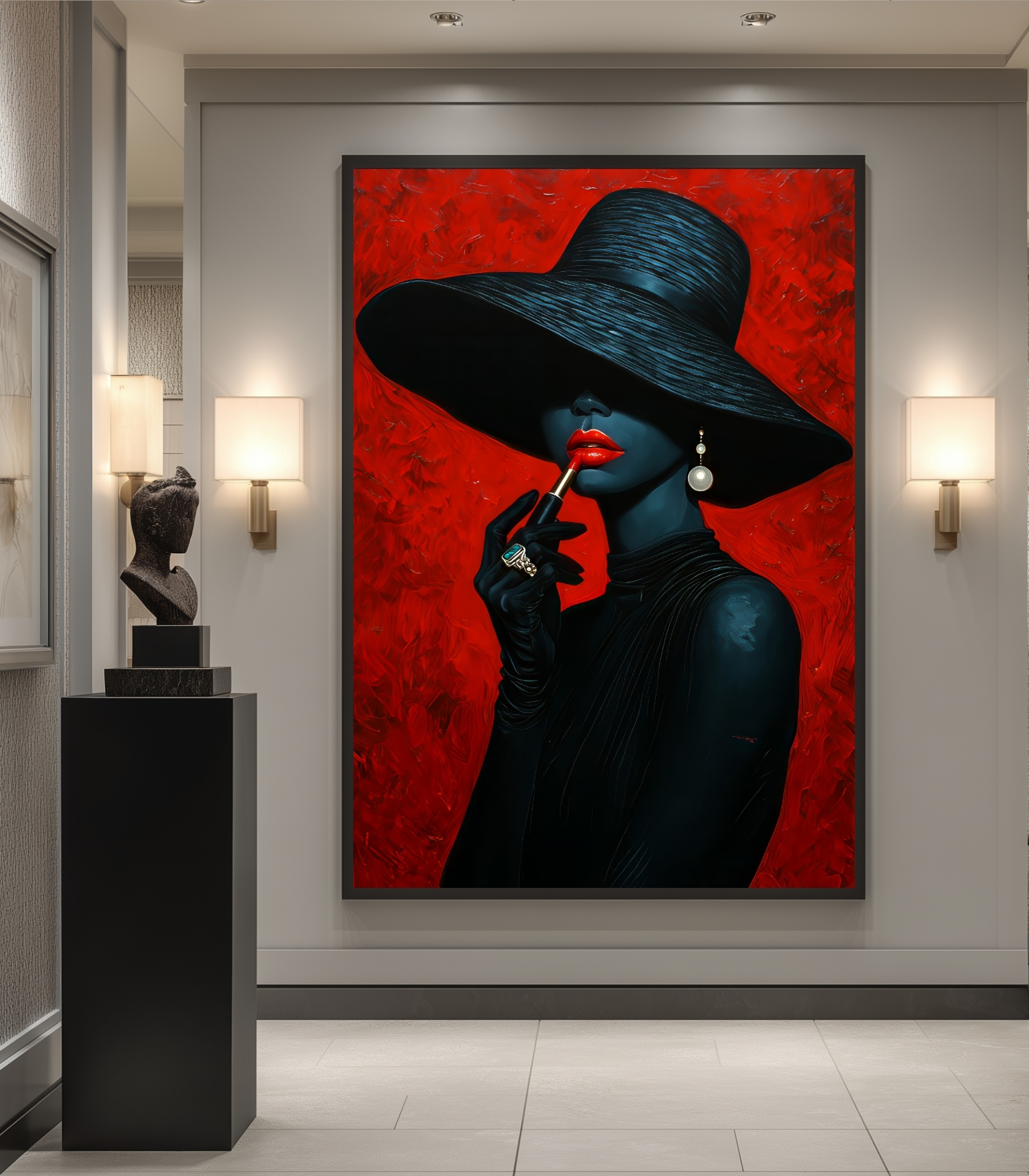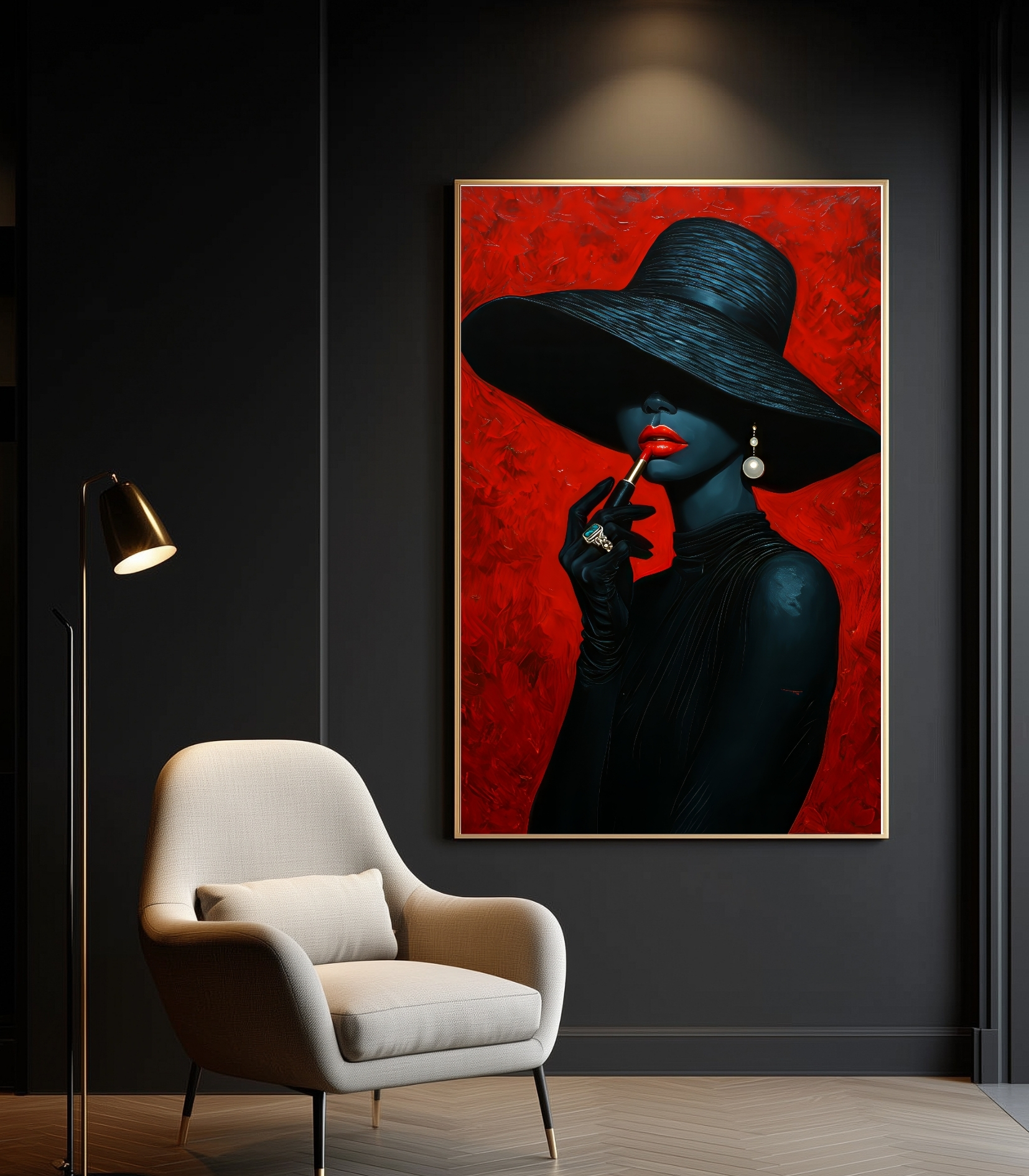 تابلو دکوراتیو مدرن طرح بانوی شیک قرمز، تجسمی از جذابیت، قدرت و راز زنانه است. طرح یک بانوی شیک و مرموز با کلاه بزرگ سیاه و لبهای قرمز آتشین در پسزمینهای با بافت آبستره، یک کنتراست بصری فوقالعاده ایجاد میکند که نگاه هر بینندهای را به خود جلب میکند. این اثر هنری جسورانه، گزینهای عالی برای ورودی منزل، اتاق نشیمن، اتاق خواب، سالنهای زیبایی و بوتیکهای مدرن است که به دنبال یک بیانیه دکوراتیو قوی هستند.
