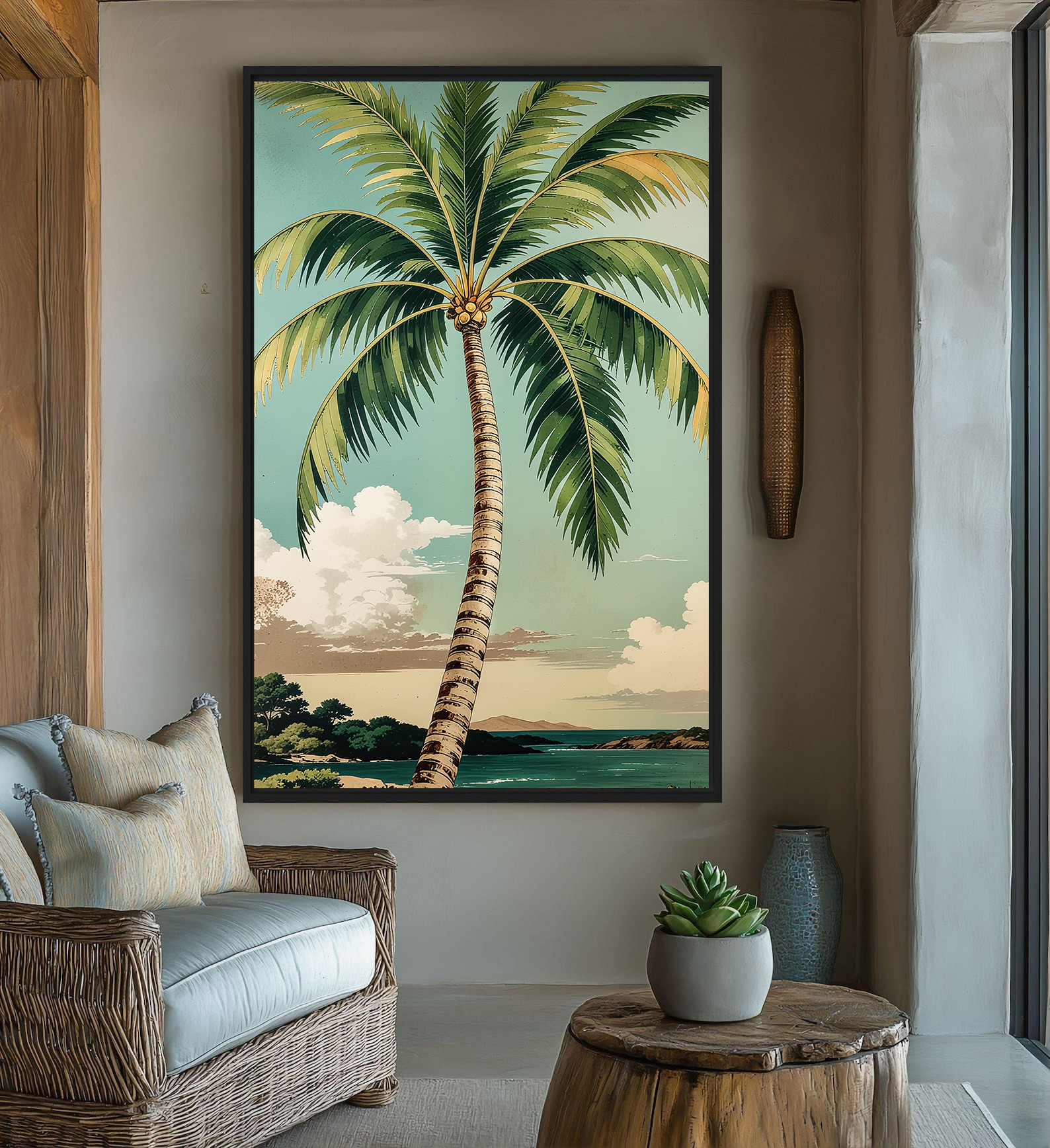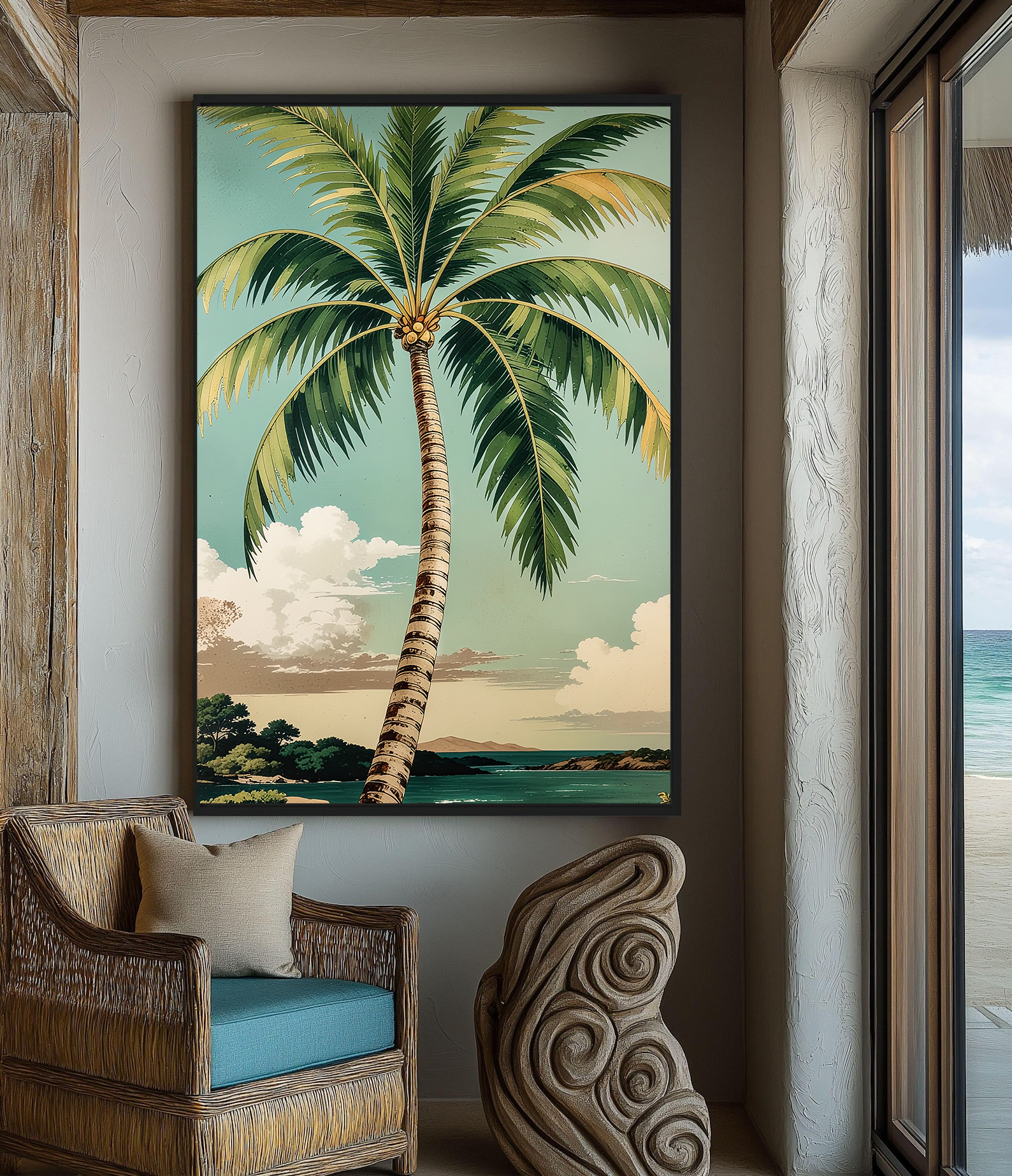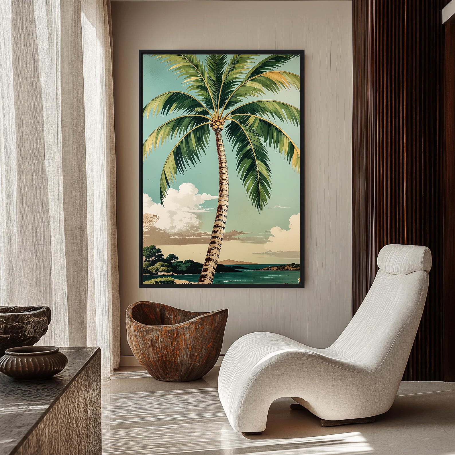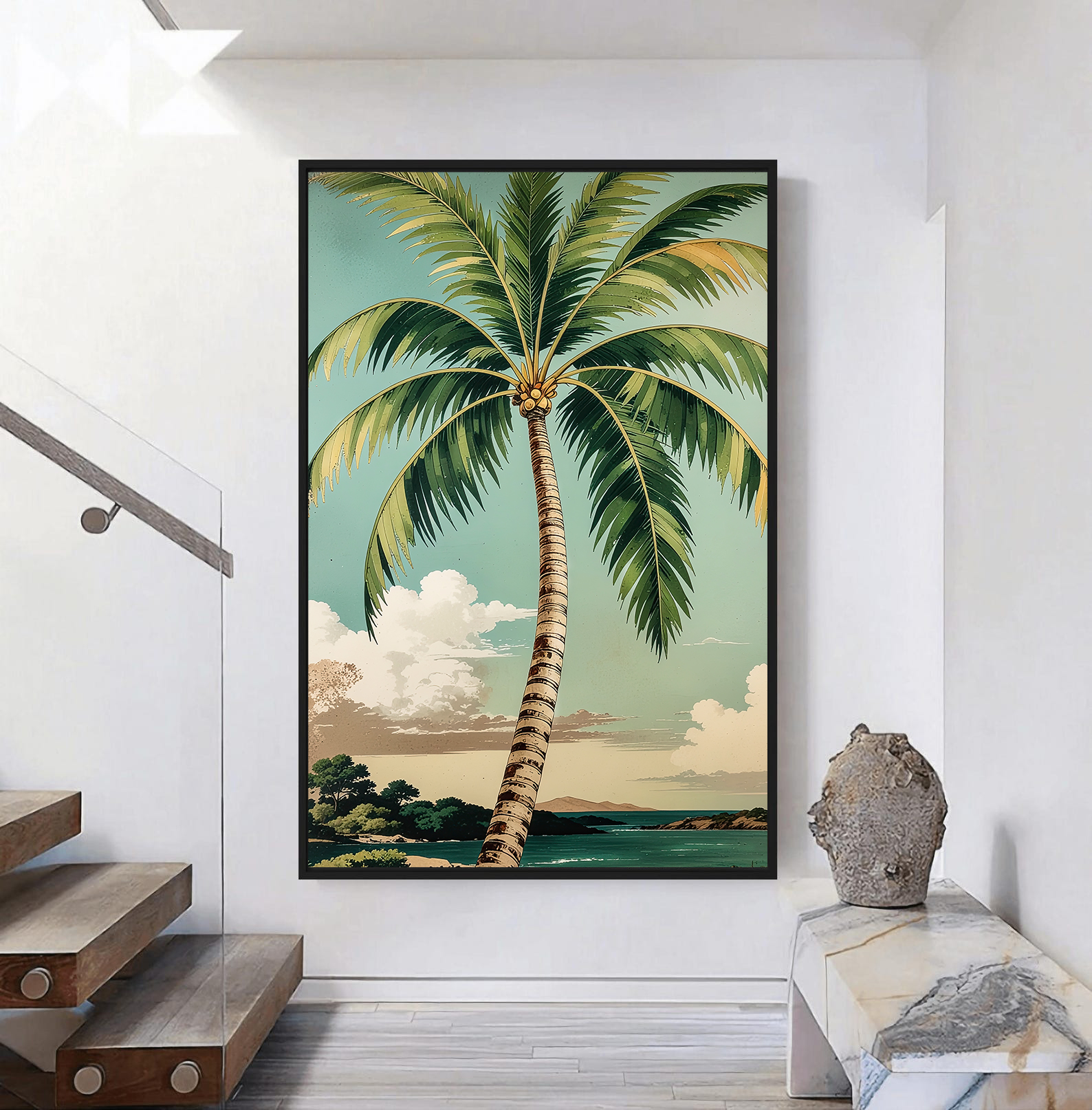 تابلو دکوراتیو مدرن طرح درخت نخل و چشمانداز زیبای ساحل، انتخابی خاص برای افرادی است که به دکوراسیون گرمسیری و طبیعت الهامبخش علاقه دارند. این تابلو دکوراتیو با رنگهای شاد و آرامشبخش، حس تازگی و سرزندگی را به فضای نشیمن، اتاق خواب یا محیط کاری شما منتقل میکند.