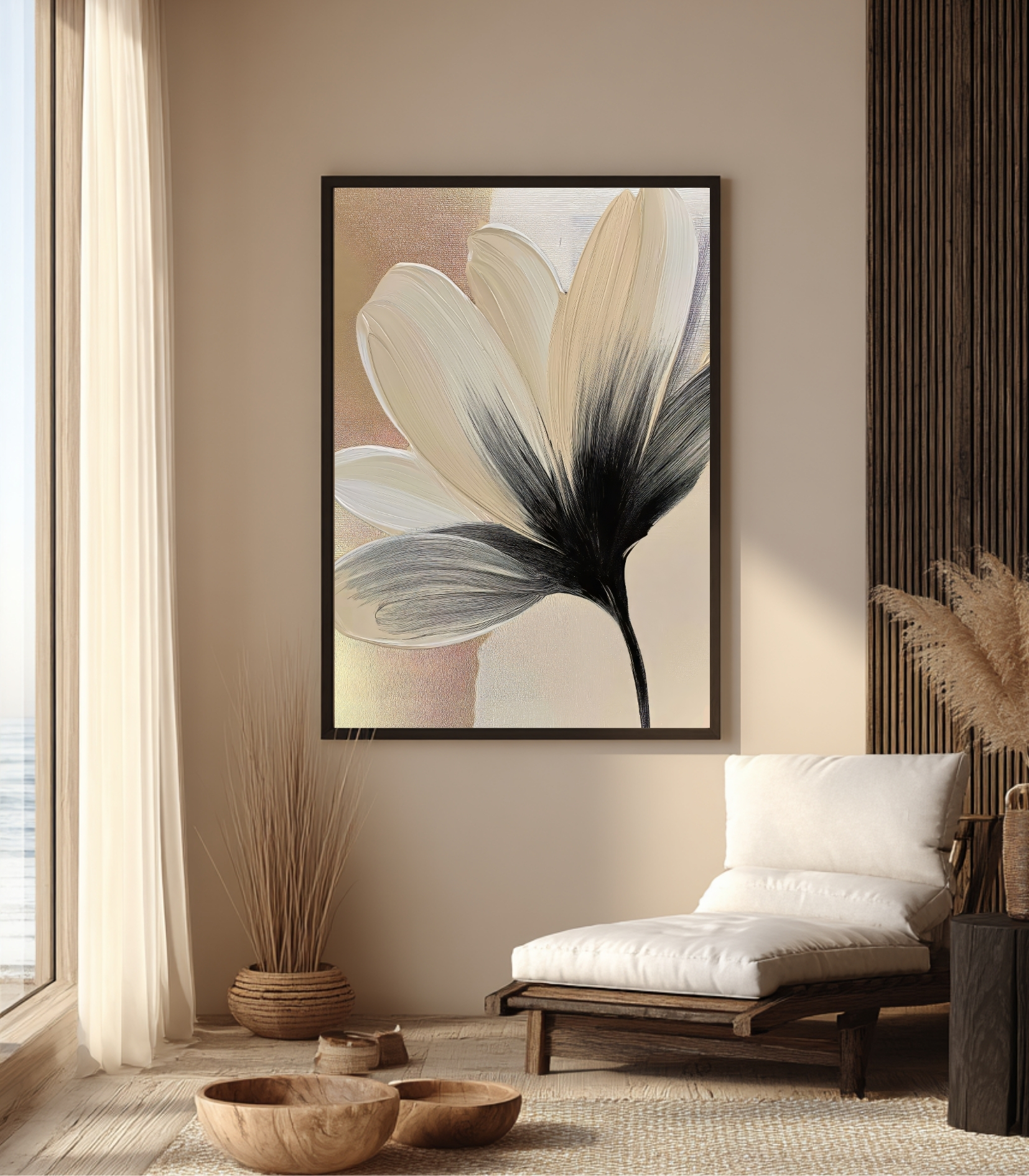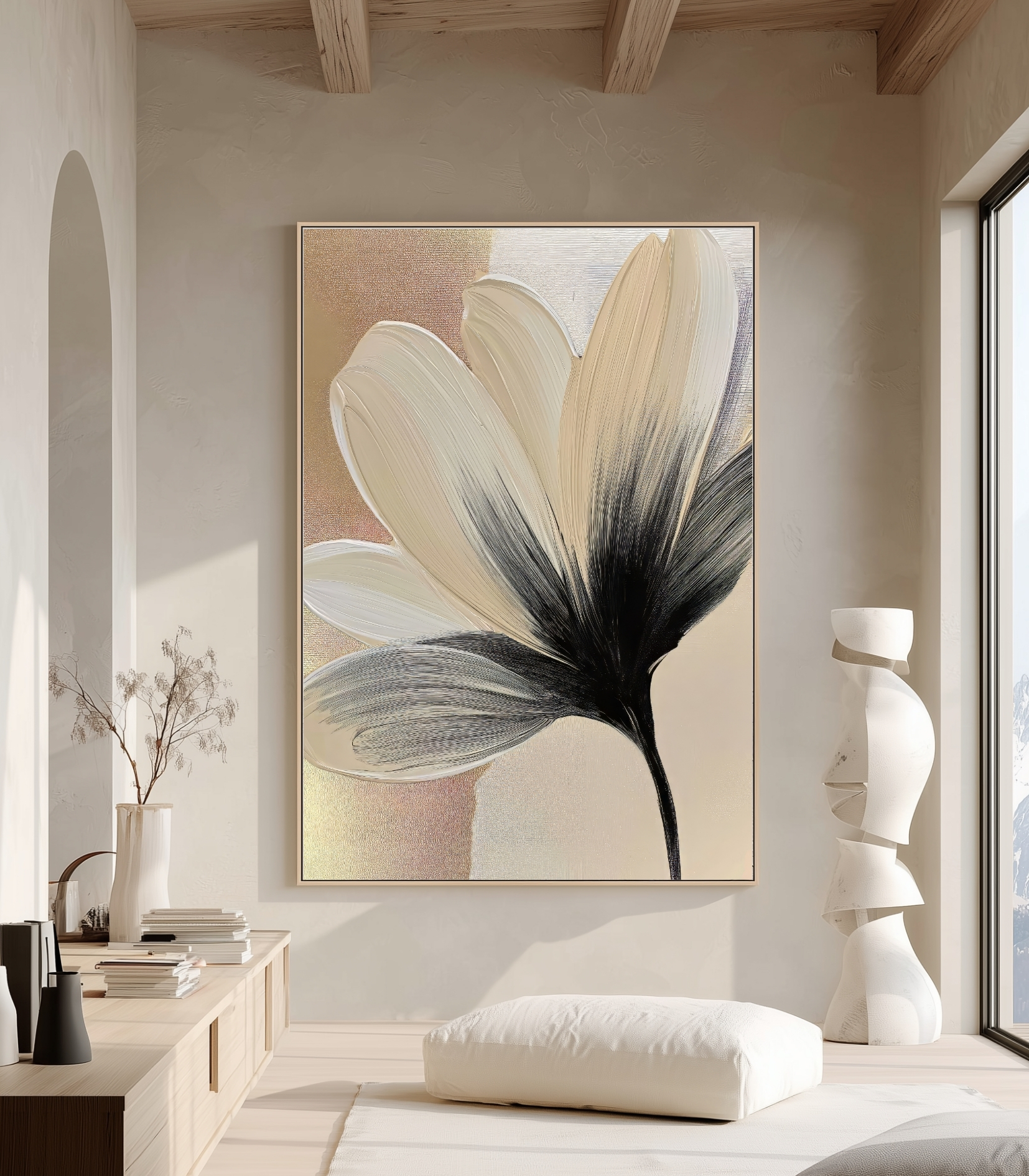 این تابلو به دلیل تم رنگی “نود” (Nude) و خنثی، با اکثر دکوراسیونها ست میشود. برای نصب بالای کنسولهای چوبی روشن، فضای ناهارخوری، اتاق خواب مستر و فضاهای اداری مدرن بسیار پیشنهاد میشود.