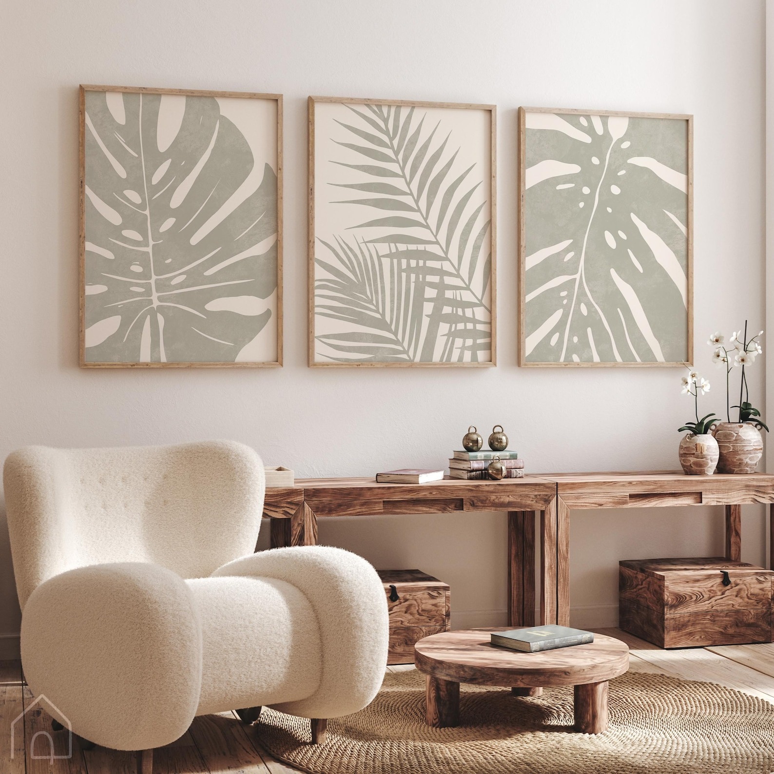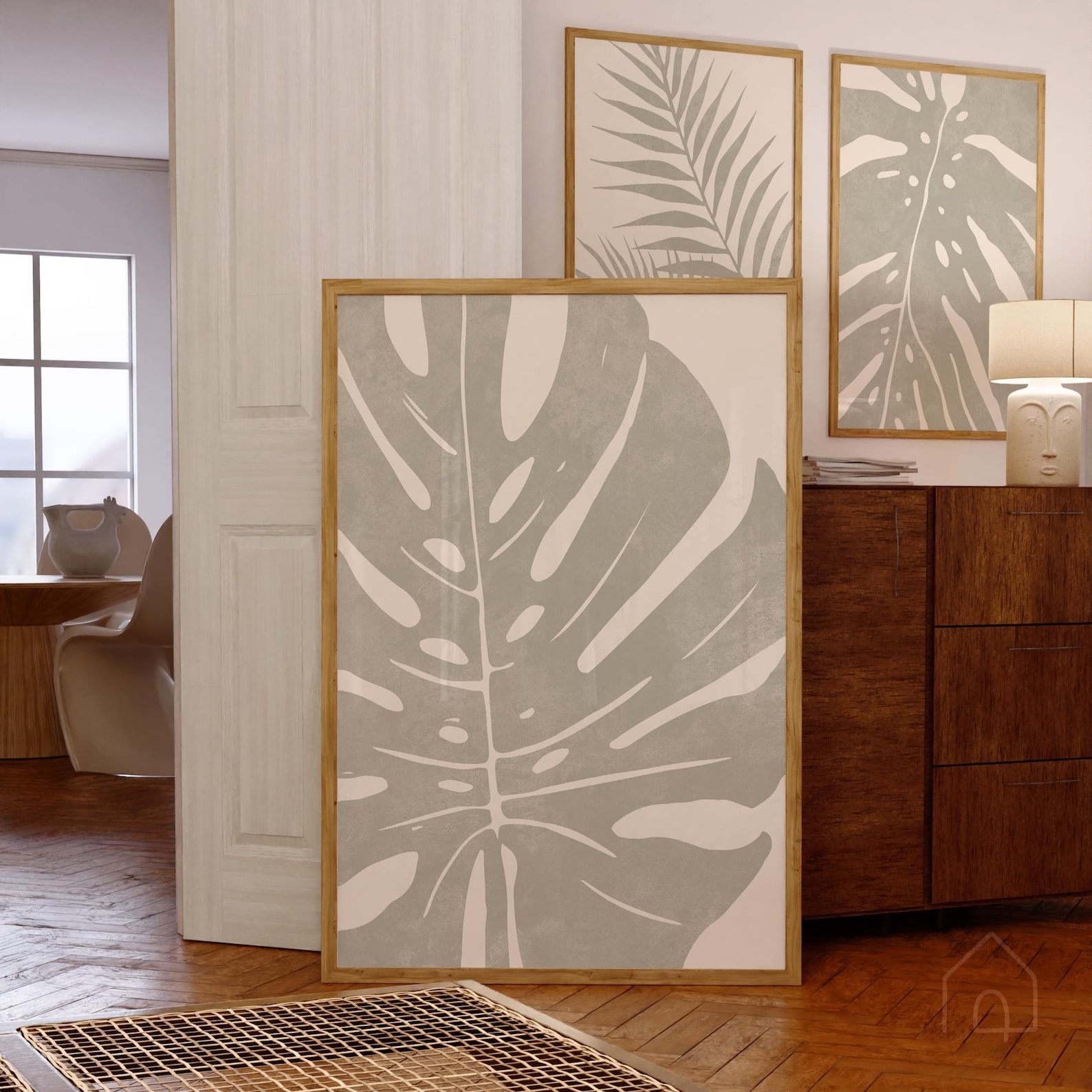 ست ۳ تایی برگهای آرام، مجموعهای بینظیر برای طرفداران سبکهای تابلو دکوراتیو مینیمال، بوهمی (بوهو) و طبیعتگرا است. این ست با طراحی ساده و زیبا از برگهای پهن (مونسترا) و برگهای نخل، و استفاده از رنگهای خنثی مانند سبز پاستلی (سِیج)، کرم و بژ روشن، فضایی مملو از آرامش و انرژی مثبت را به خانه شما میآورد. این ست سهتکه بهترین انتخاب تابلو برای بالای کنسول، کاناپه یا تختخواب شماست.